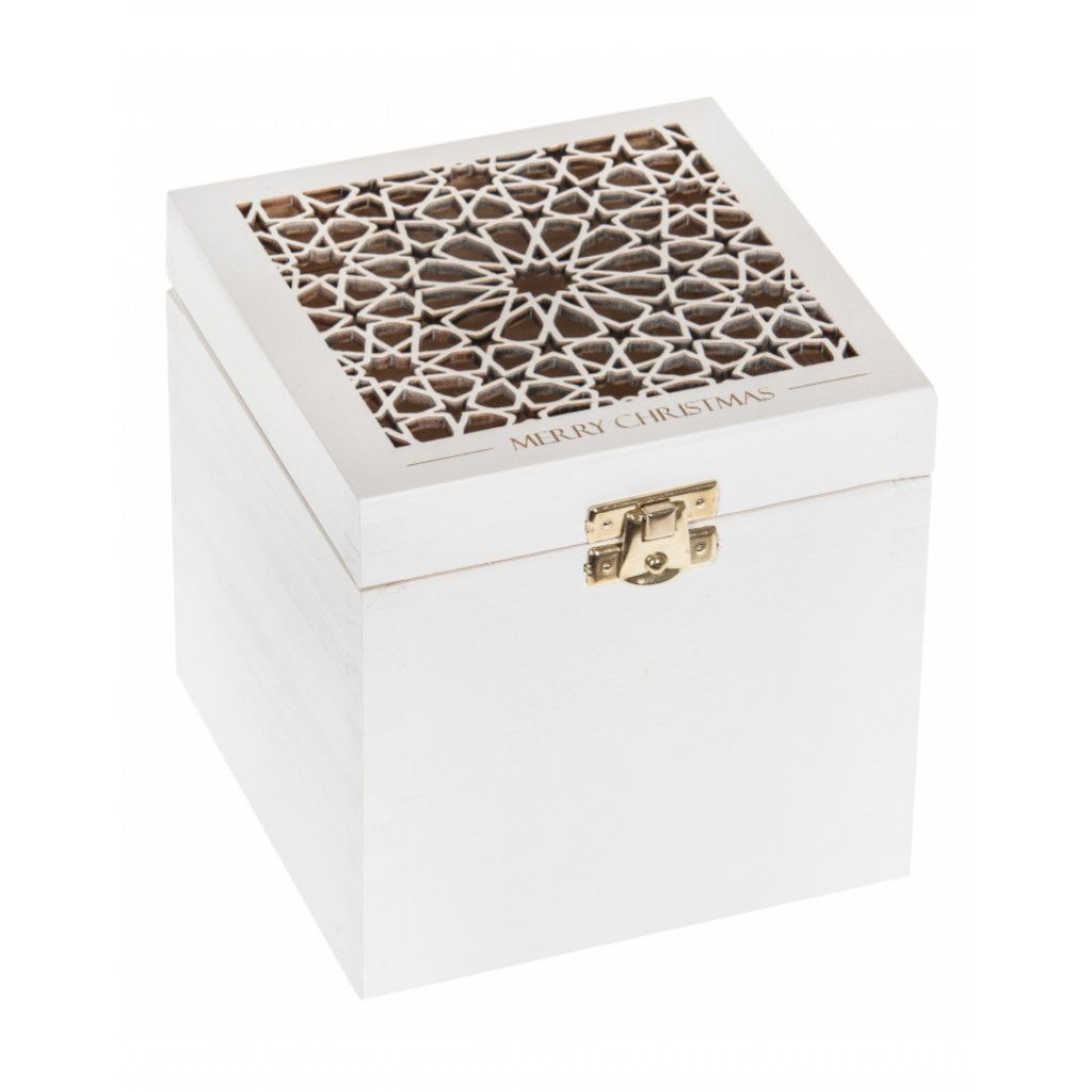 Dřevěná krabička Merry Christmas - 14x14x14 cm, Bílá