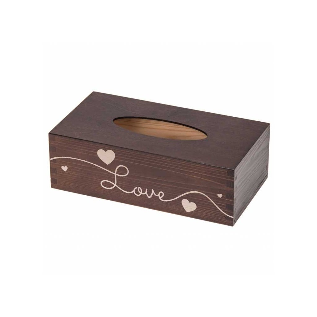 Dřevěná krabička na kapesníky LOVE - 26x14x8 cm, Tmavě hnědá