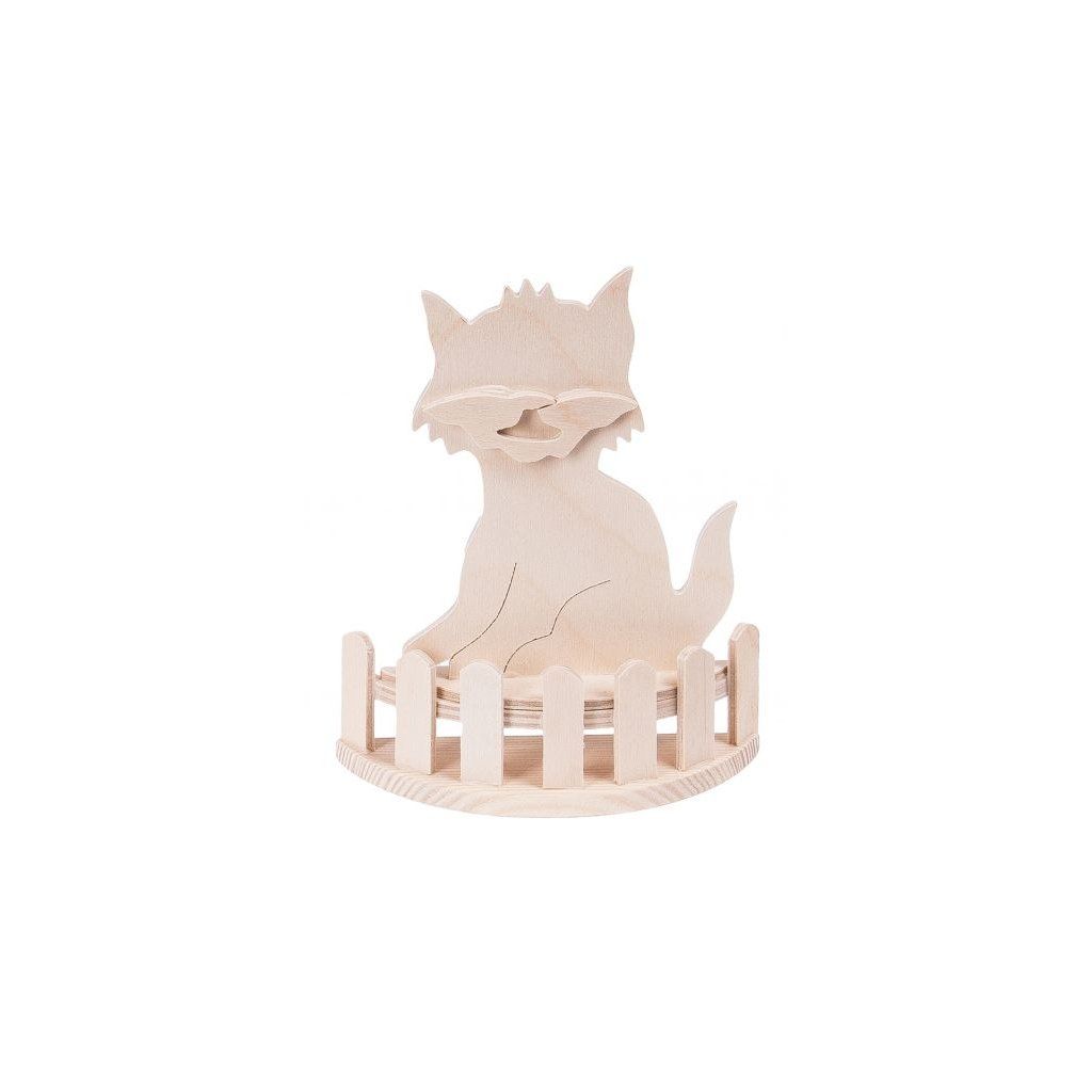 Dřevěná ozdoba (kočka za plotem) - 14x11 cm