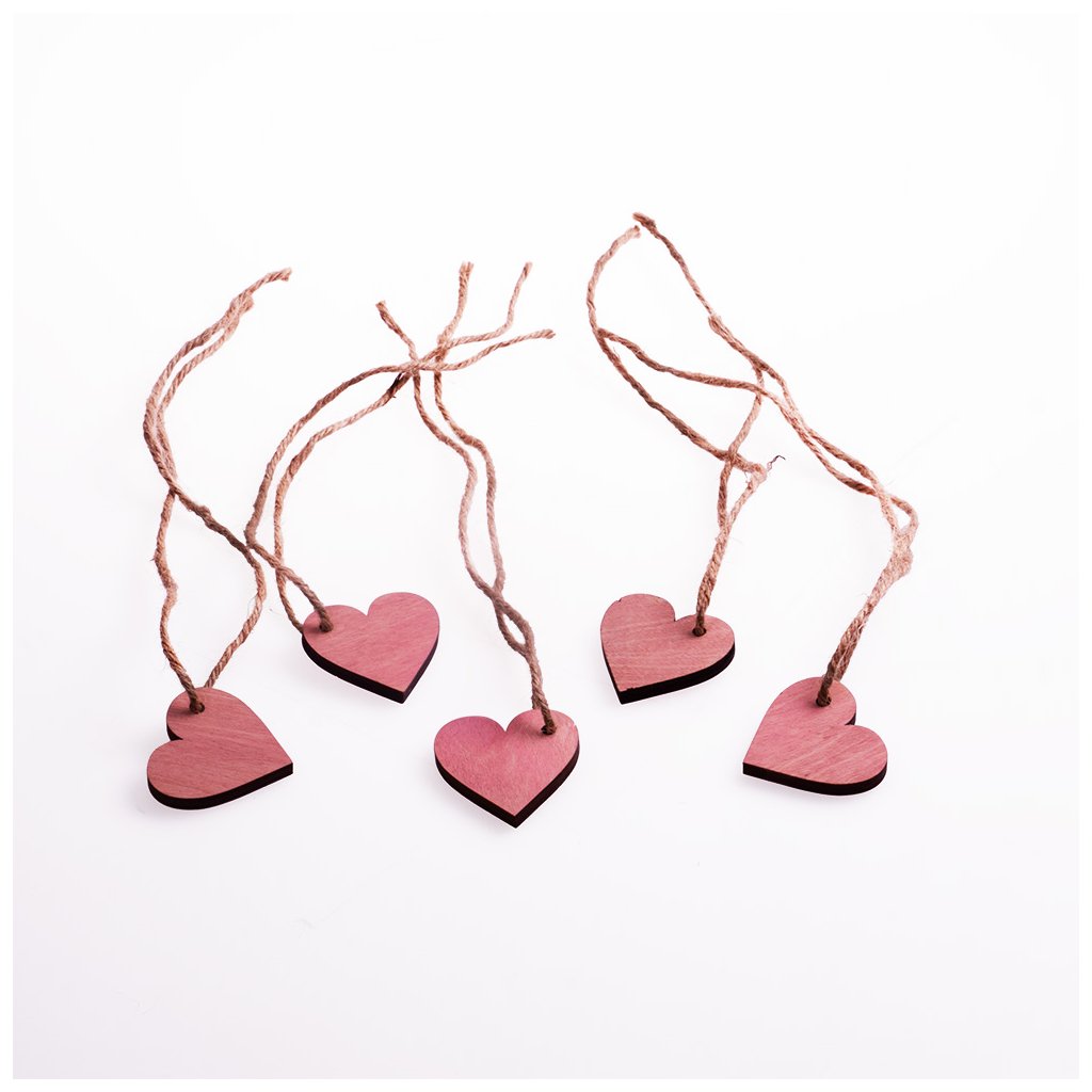 Dřevěná sada ozdob - srdce, 4x4x0,6 cm růžová 5ks
