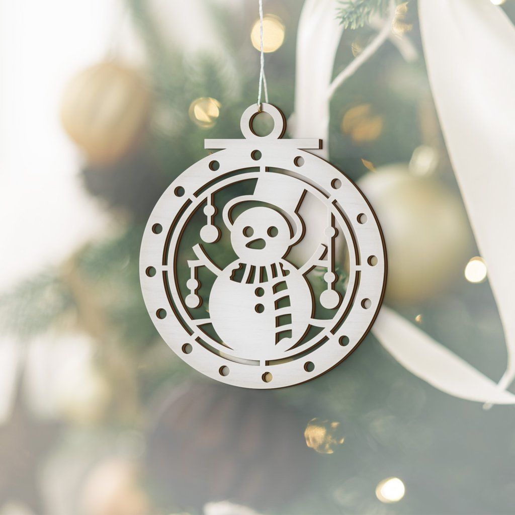 Dřevěná Vánoční ozdoba - Sněhulák 10x12 cm, Bílá