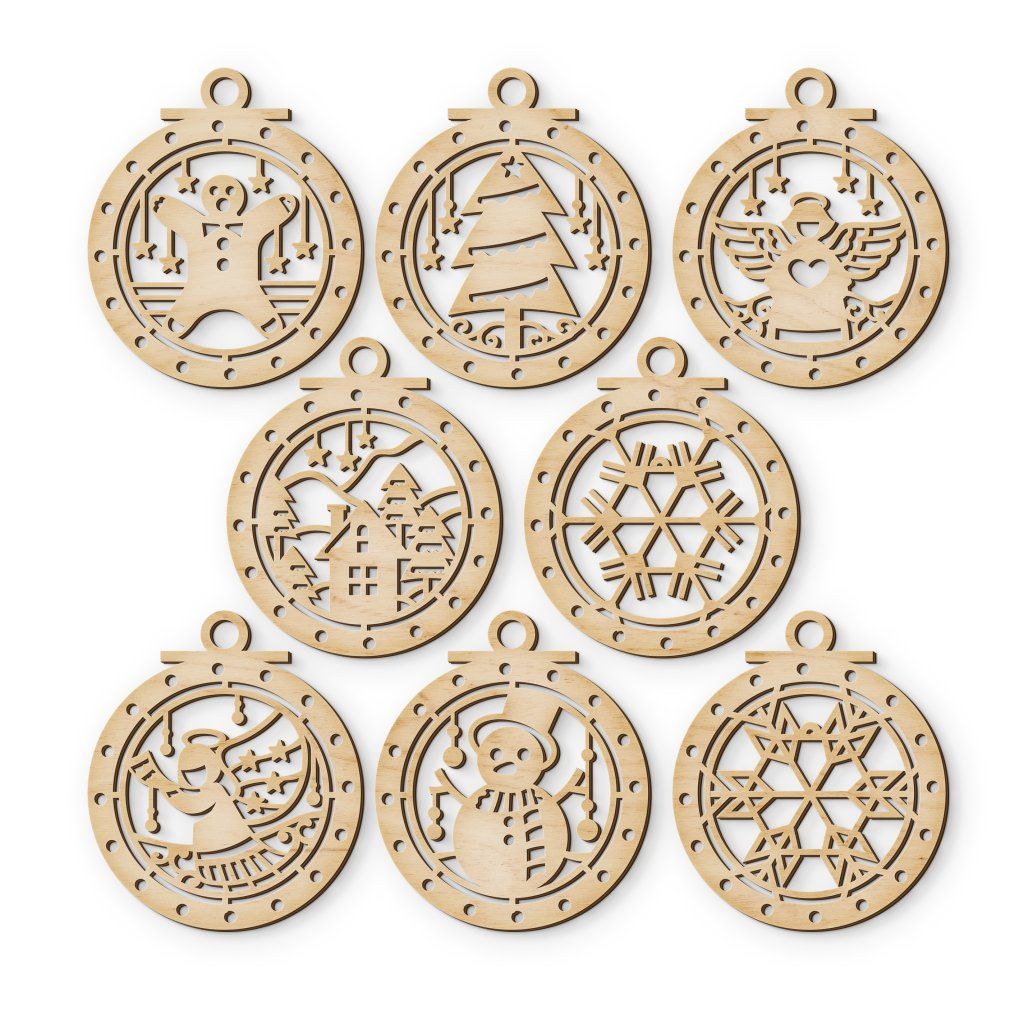 Dřevěná Vánoční sada ozdob (8ks) - 10x12 cm, Přírodní