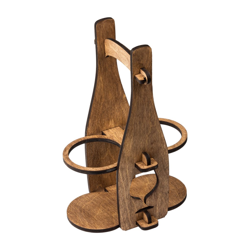 Dřevěný dárkový nosič na 2 vína s visačkou ve tvaru láhve, Hnědá 6mm