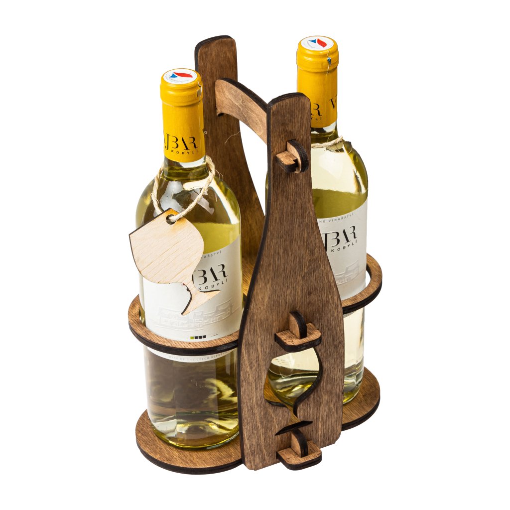 Dřevěný nosič na 2 vína je praktický dárek k jakékoliv příležitosti jako jsou například narozeniny, svátek, vánoce nebo jen tak. Nosič je ošetřen voskovou barvou, tudíž nosič je zdravotně nezávadný, vodě odpudivý a jemný na povrch. Vyráběno v české republice.