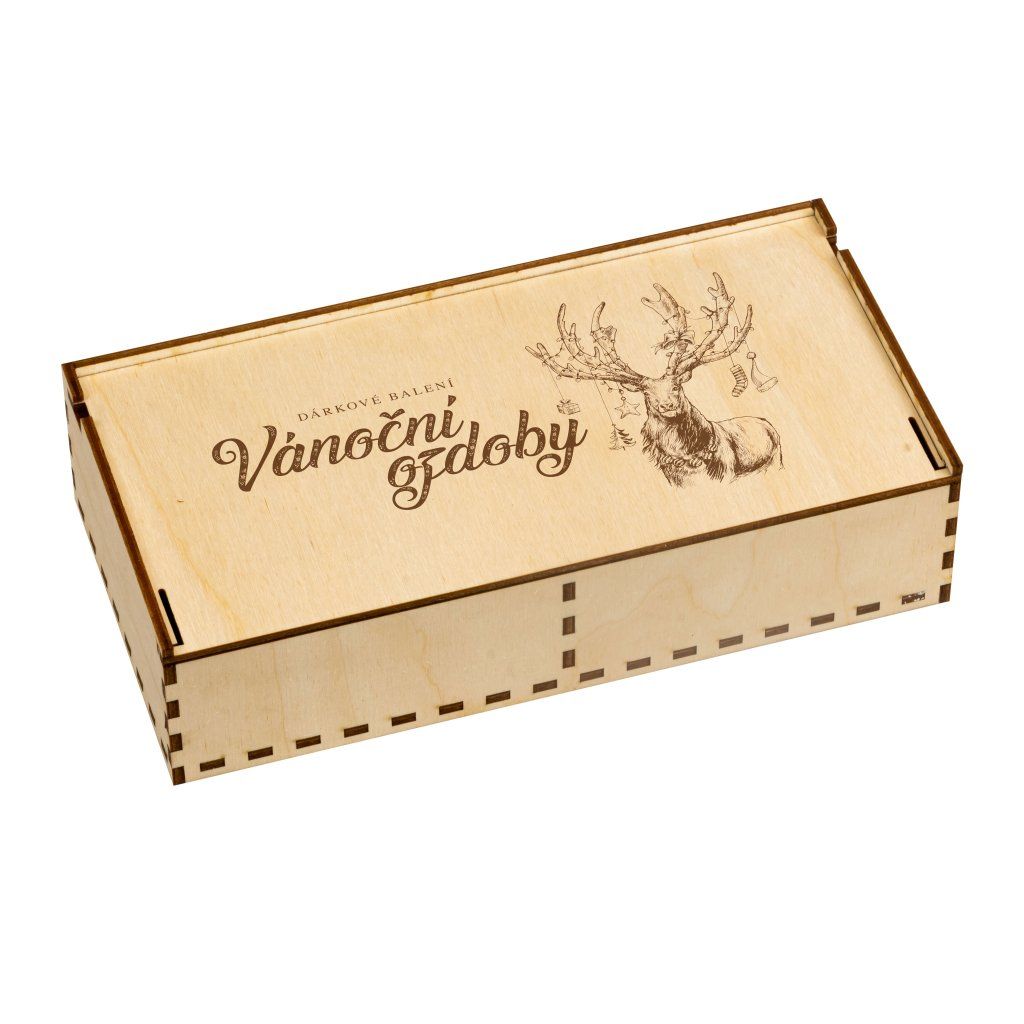 Kolekce 24 dřevěných vánočních ozdob v dárkové krabičce s vypáleným vánočním motivem