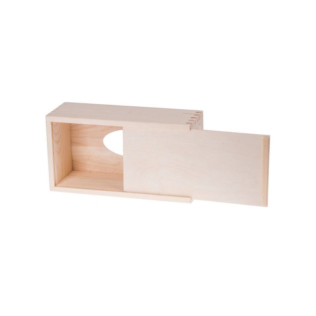 Dřevěná krabička na kapesníky s vysouvacím dnem.
